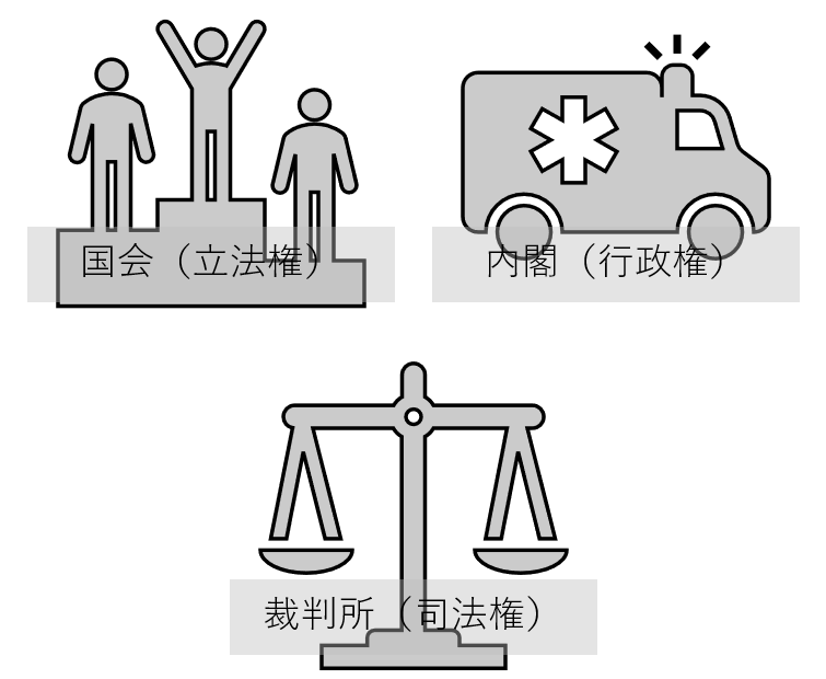 日本国憲法では、基本的人権を保護するために、国家権力を次の3つに分散させています。