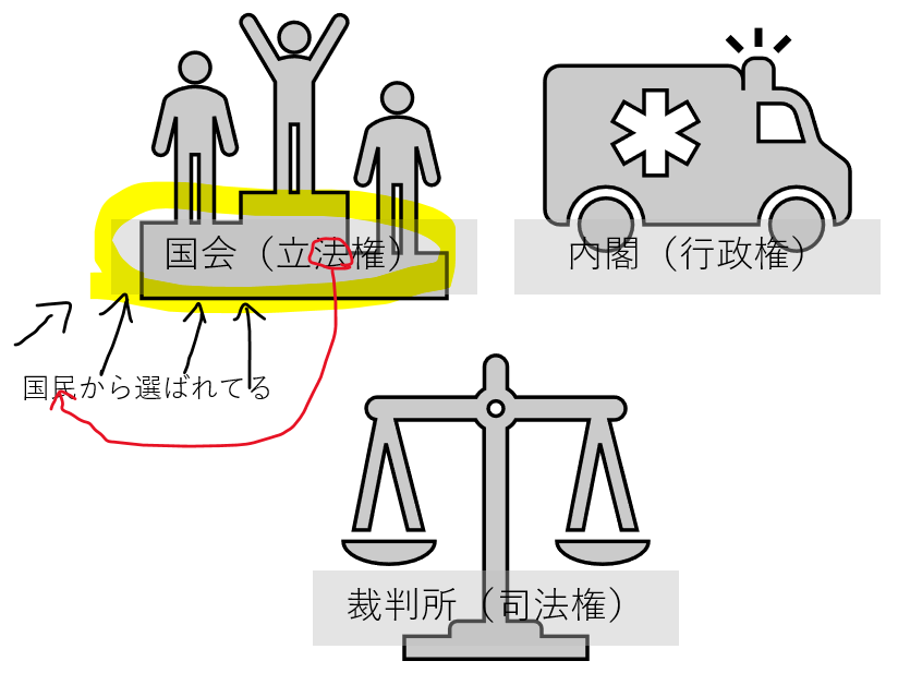 そういうジャイアンのような行為を設定するような法律は国会だけ(立法権)が作れますよ!ってことです。