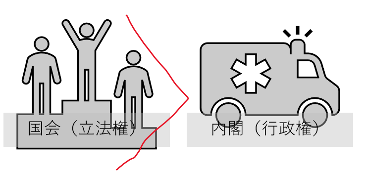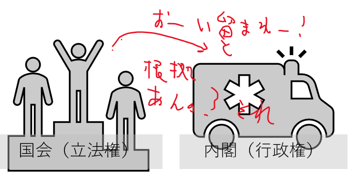 法律が優位!!!と覚えましょう。法律(立法)優位なのだから、行政は立法に逆らえないわけですよね!