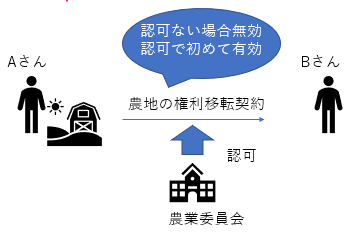 と思うかもしれませんが、農地法では「農業委員会の許可がないと無効」と規定されているので「認可」になるわけですね。