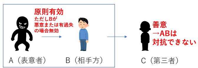 さきほどの心裡留保においてはAB取引は原則有効でしたが、