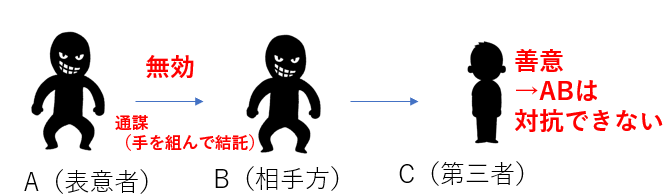 ※つまり、AB間が無効だった場合、無効は誰でも主張できるので、Cが善意だったとしても善意のCから「ABは無効だよね!」