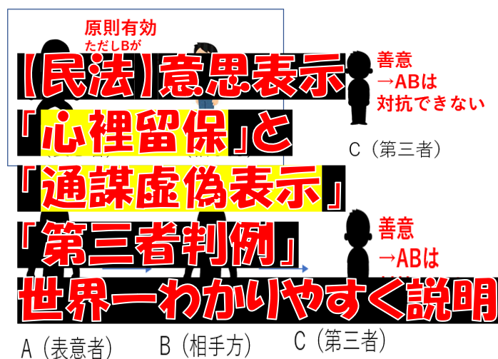 この記事は「心裡留保と通謀虚偽表示」について行政書士試験対策向けにわかりやすく解説しています。
