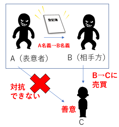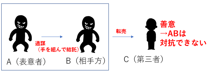 例えば、Aが自己の所有する不動産をBと通謀してBに仮装譲渡し、Bが善意のCに転売した場合、