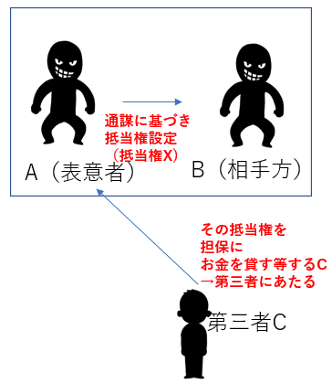 当然CはABの通謀虚偽表示を前提に取引関係に入って利害関係を有するわけですから、第三者にあたるのです。
