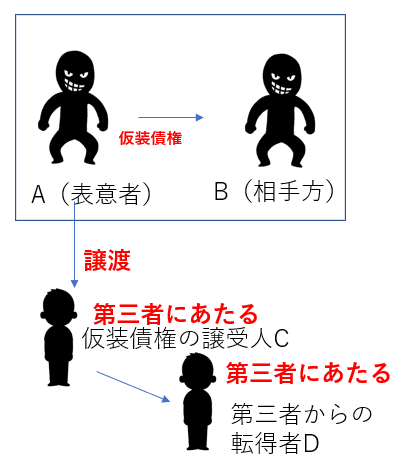①虚偽表示の当事者(A、B)及び包括承継人以外の者で、
