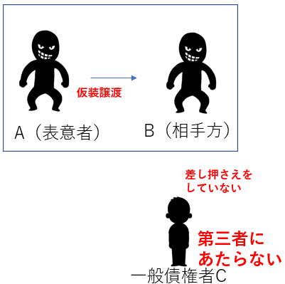 通謀虚偽表示における第三者にあたらない人(第三者じゃないのでこの人が善意でもABは対抗できる)